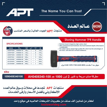 مطرقة صلب مربعة يد فايبر 2 لون 1000 جرام اي بي تي موديل APT AH0408340-100
