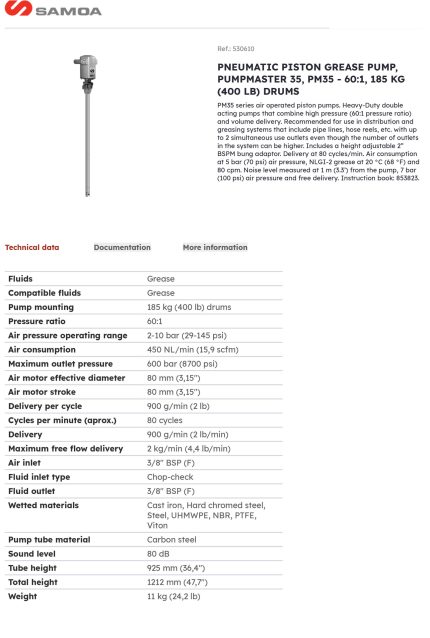 طلمبة شحم بالغطاء وبرميل و عربة أسباني مقاس 50 كيلو جرام SAMOA