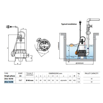 طلمبه غاطسه بيدريللو 1.5حصان زهر رواسب 40مم 1.5بوصه – 13.5م إيطالي موديل – PEDROLLO VXCm15/35