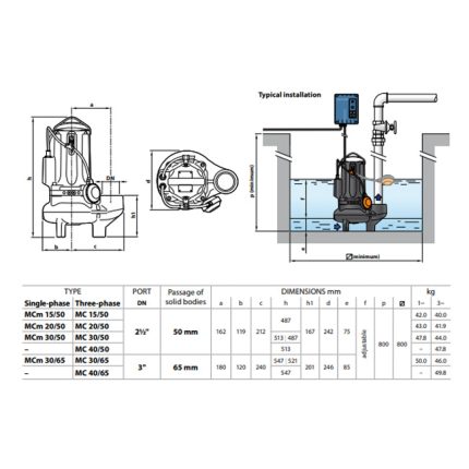 طلمبه غاطسه بيدريللو 1.5حصان 50مم 2بوصه 14م PEDROLLO MCm15/45