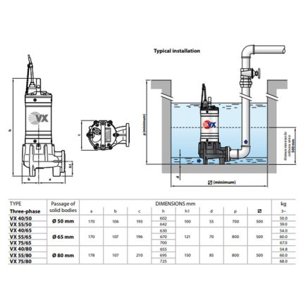 طلمبه غاطسه 1.5حصان رواسب 40مم 1.5بوصه 13.5م إيطالي موديل – PEDROLLO VXm15/35-N