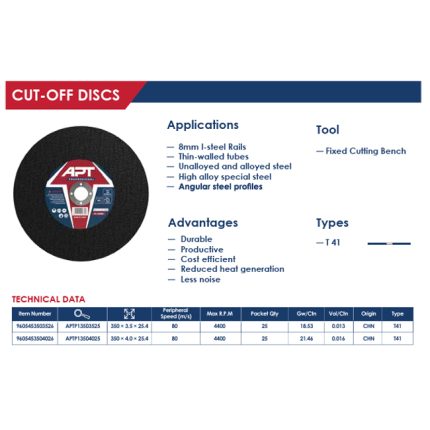 حجارة قطعية حديد 350×4×25.4 مم اي بي تي IND موديل APT APTI13504025