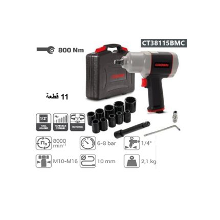 طقم شنيور فك وربط كراون 11 قطعه 1/2 بوصه 800 نيوتن شنطة بلاستيك موديل CROWN – CT38115-BMC