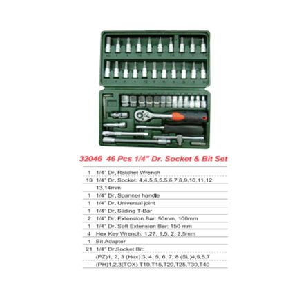 طقم لقم رباط وسن مفك 46 قطعة 1/4 بوصه تايواني موديل 32046 KWG