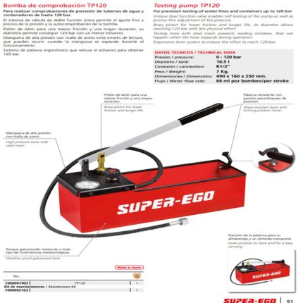 ماكينة طلمبه اختبار مواسير سوبر إيجو اسباني 120 بار SUPER-EGO