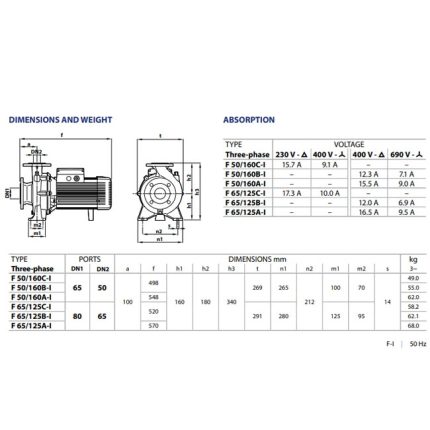 طلمبه بفلنشه بيدريللو 3فاز 5.5حصان 50/65مم إيطالي موديل – PEDROLLO F 50/160C-I