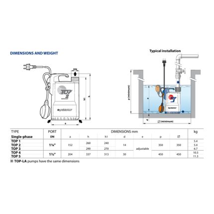 طلمبه غاطسه بيدريللو مياة نظيفة 1.25 حصان 1.5بوصه – 14.5م إيطالي موديل – PEDROLLO TOP5