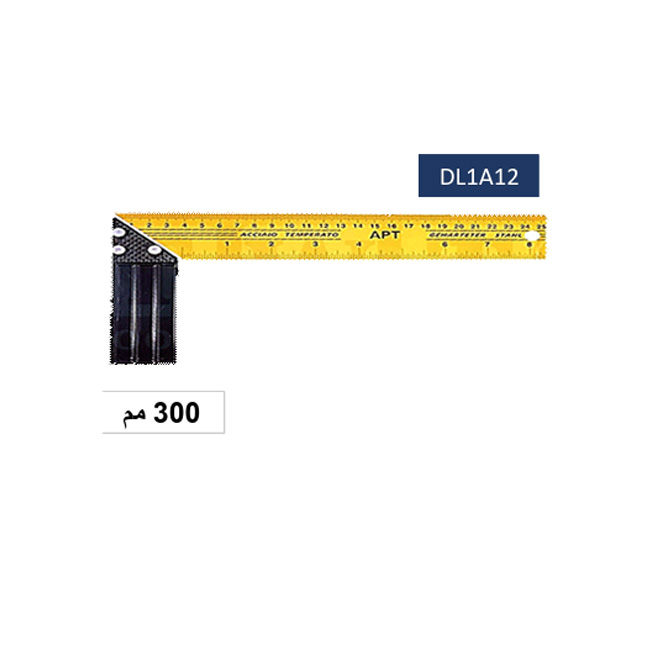 الطول: حوالي 300 مم (≈ 12 بوصة) — أي أحد أحجام الزوايا المستخدمة لقياس أو تثبيت الزوايا على القطع.