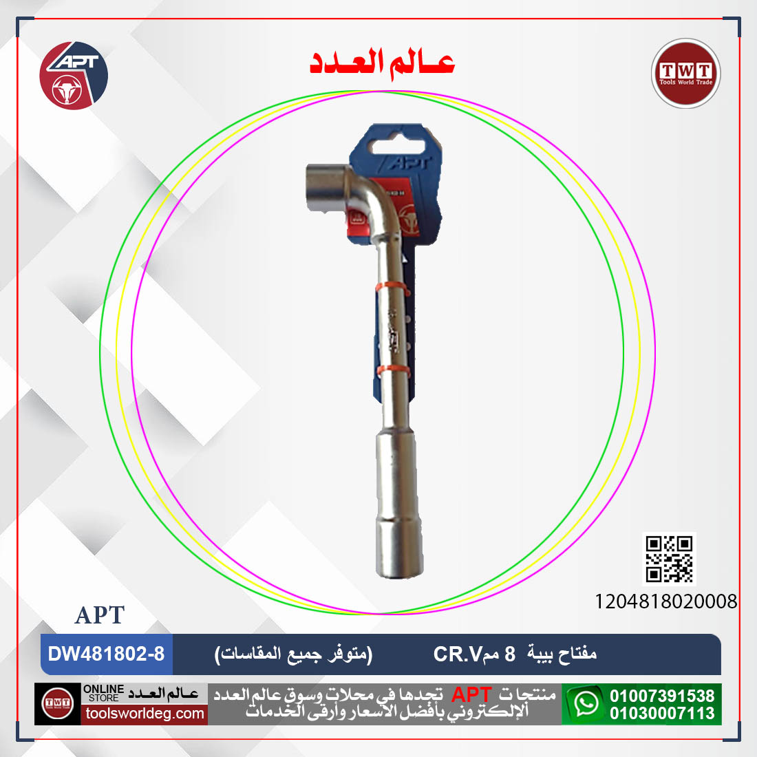 الوسوم: APT, DW481802, اي بي تي, عالم العدد, عدد, مفاتيح بيبه, مفتاح بيبة, مفتاح بيبه, مفتاح بيبه اي بي تي, مفتاح بيبه كروم فانديوم 8 مم CR.V اي بي تي موديل APT DW481802-8