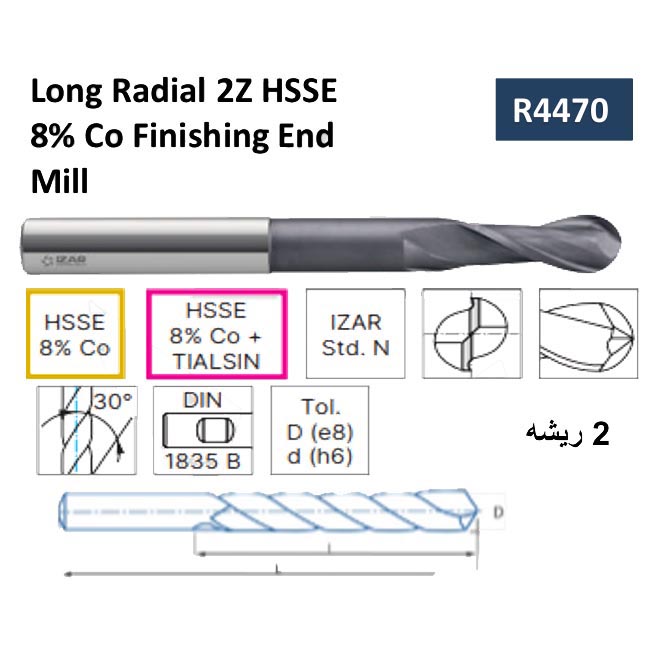 • هذا الطراز مدرج في كتالوج “4470 – HSSE 8% Co – STD.N LONG 2Z RADIAL”.