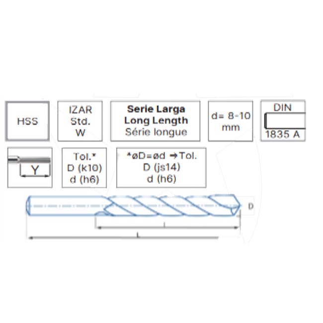 أنديميل 1ريشة 6مم ألمونيوم أسباني اكس 8مم- 90 مم ايزار IZAR R4414