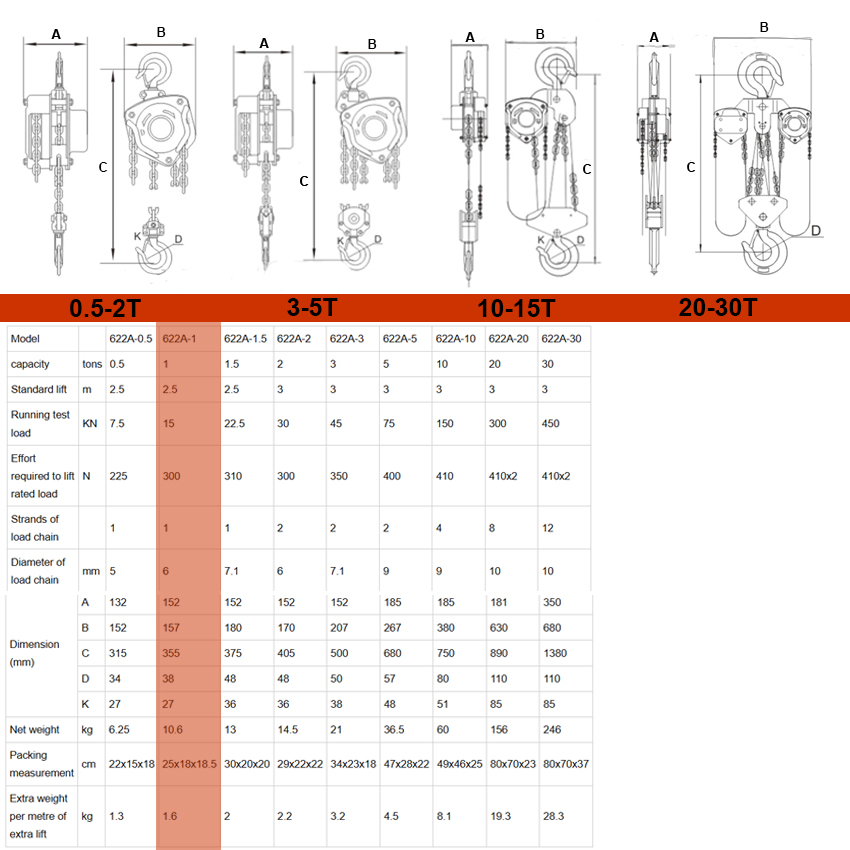 بلانكو جنزير 1 طن 2.5 متر توهو – موديل TOHO – HSZ-622A-1-2.5M