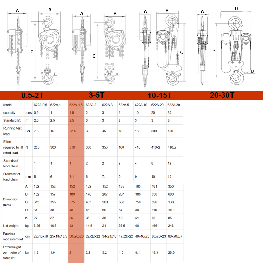 بلانكو جنزير 1.5 طن 2.5 متر توهو – موديل TOHO – HSZ-622A-1.5-2.5M
