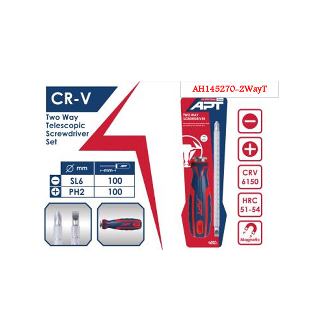 مفك 2 لون قلاب تليسكوبى PH2xSL6 طول 100 مم على كارت اي بي تي موديل APT AH145270-2WayT
