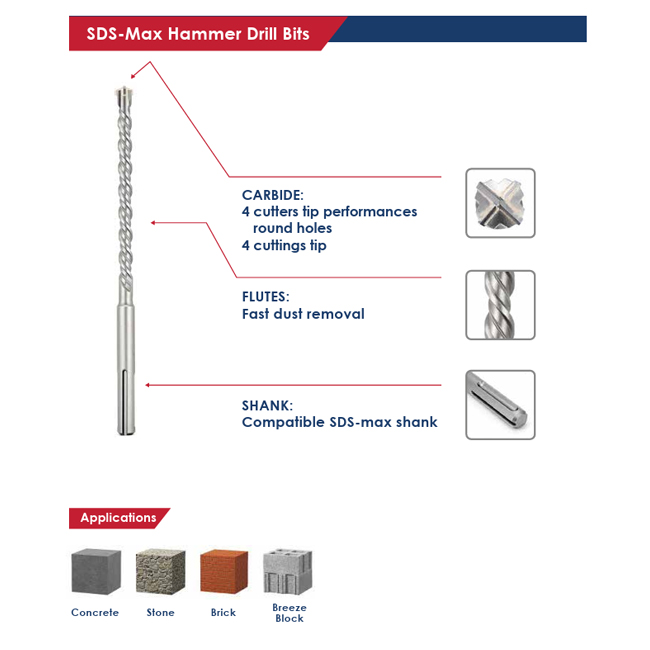 بنط هيلتى SDS-Max خدمة شاقة 4سن صينى 16 – 400 مم اي بي تي موديل APT LCA10160400