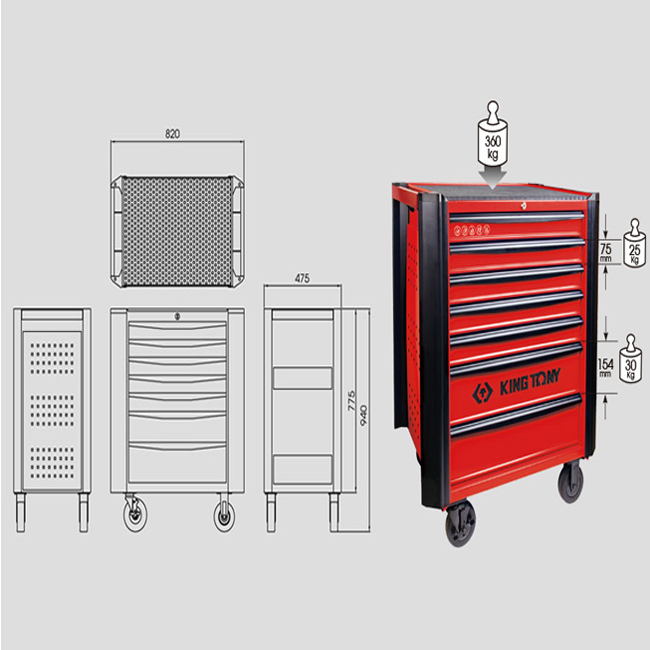 تروللى عدة 7درج 670*460*980 حمولة 360 كجم بالجوانب ألوان كينج توني KING TONY