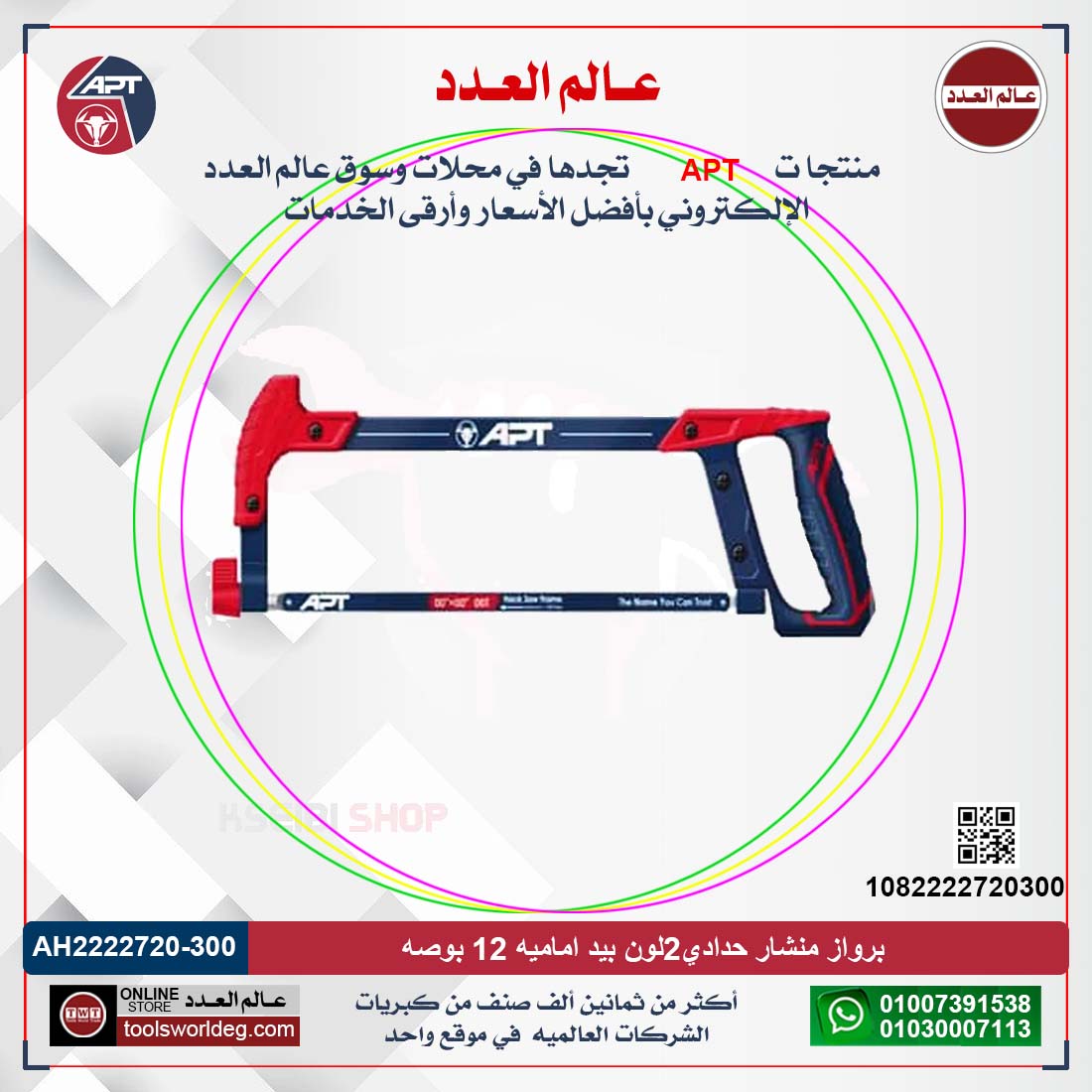 كن أول من يقيم “برواز منشار حدادي 2 لون بيد اماميه 12 بوصه (APT AH2222720-300 ( 708DXT”