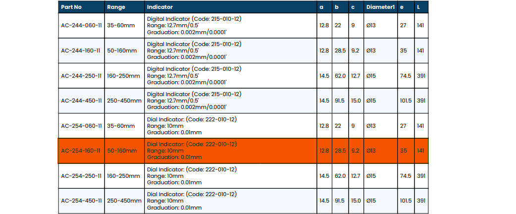 جهاز قياس بيضاوى سلندرات اكيود بالساعة 50-160 مم دقه 0.01 مم بركبة ACCUD
