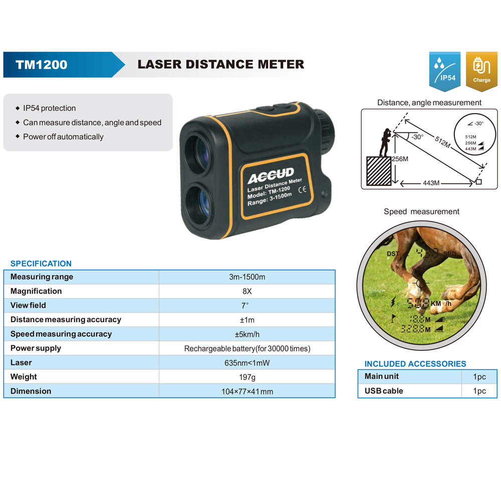 جهاز قياس مسافات باليزر اكيود 3 – 1500 متر ACCUD TM1200