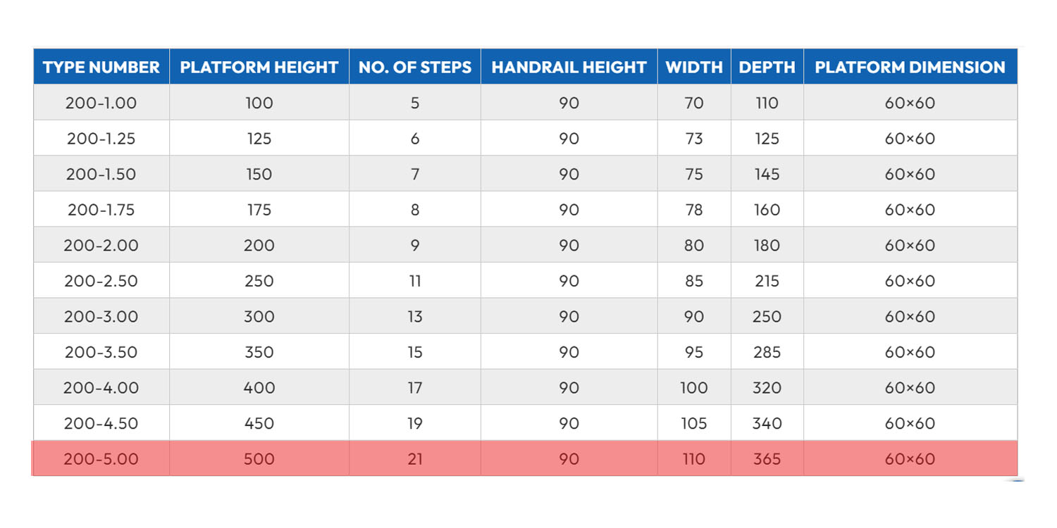 ارتفاع منصة الوقوف 500سم