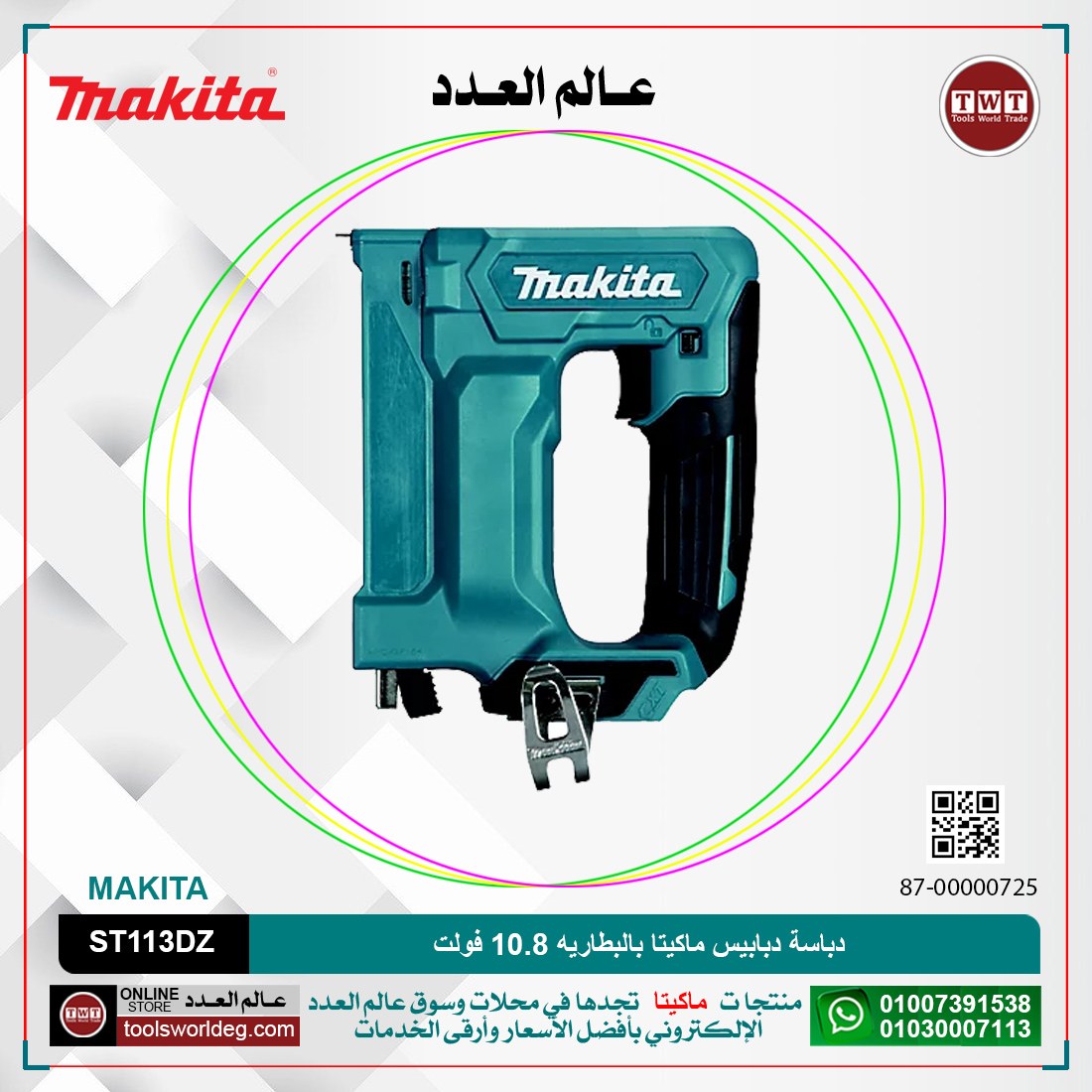 دباسة دبابيس ماكيتا بالبطاريه 10.8 فولت سعة 150 دبوس الطول 7 – 10 مم 1.3 كجم – بطارية + شاحن موديل – MAKITA ST113DZ