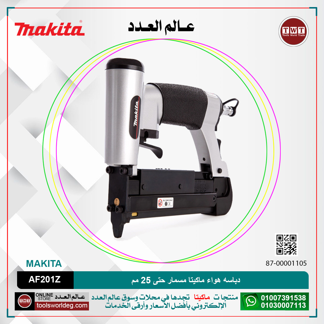 الوسوم: 87-00001105, AF201Z, MAKITA, MAKITA AF201Z, TOOLS WORLD TRADE, TWT, دباسة, دباسة صناعية, دباسة مسمار, دباسة هواء, دباسه هواء, دباسه هواء ماكيتا مسمار, دباسه هواء ماكيتا مسمار حتى 25 مم, دباسه هواء ماكيتا مسمار حتى 25 مم سعة 100 مسمار /.9 كجم MAKITA AF201Z, عالم العدد, عدد, ماكيتا, ماكينات, معدات, معدات تعمل بالهواء, مكن, مكنة