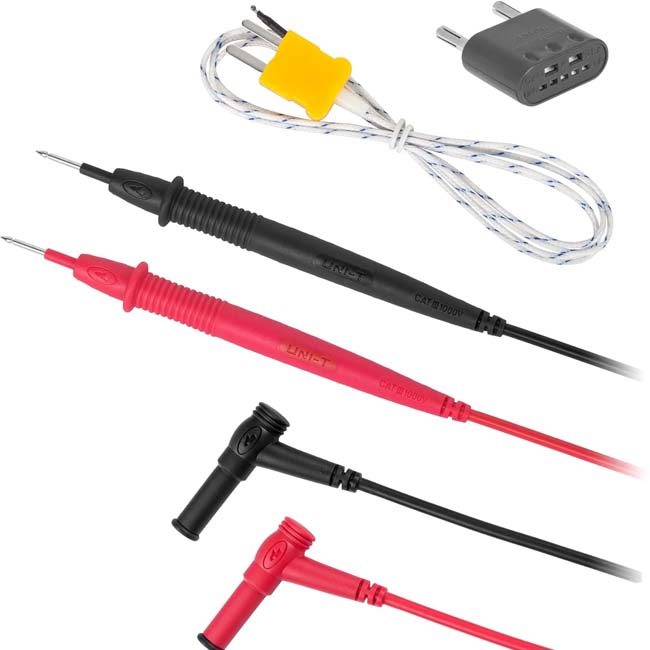 أوصل السلك الأسود إلى الطرف COM، والسلك الأحمر إلى الطرف Hz VΩ (في UT58C).