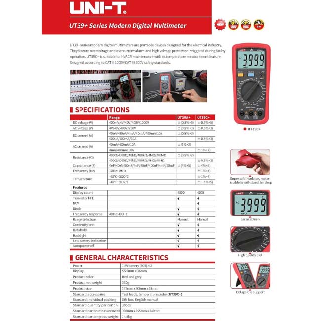 مقياس متعدد رقمي (Digital Multimeter) من شركة UNI-T، من سلسلة UT39.