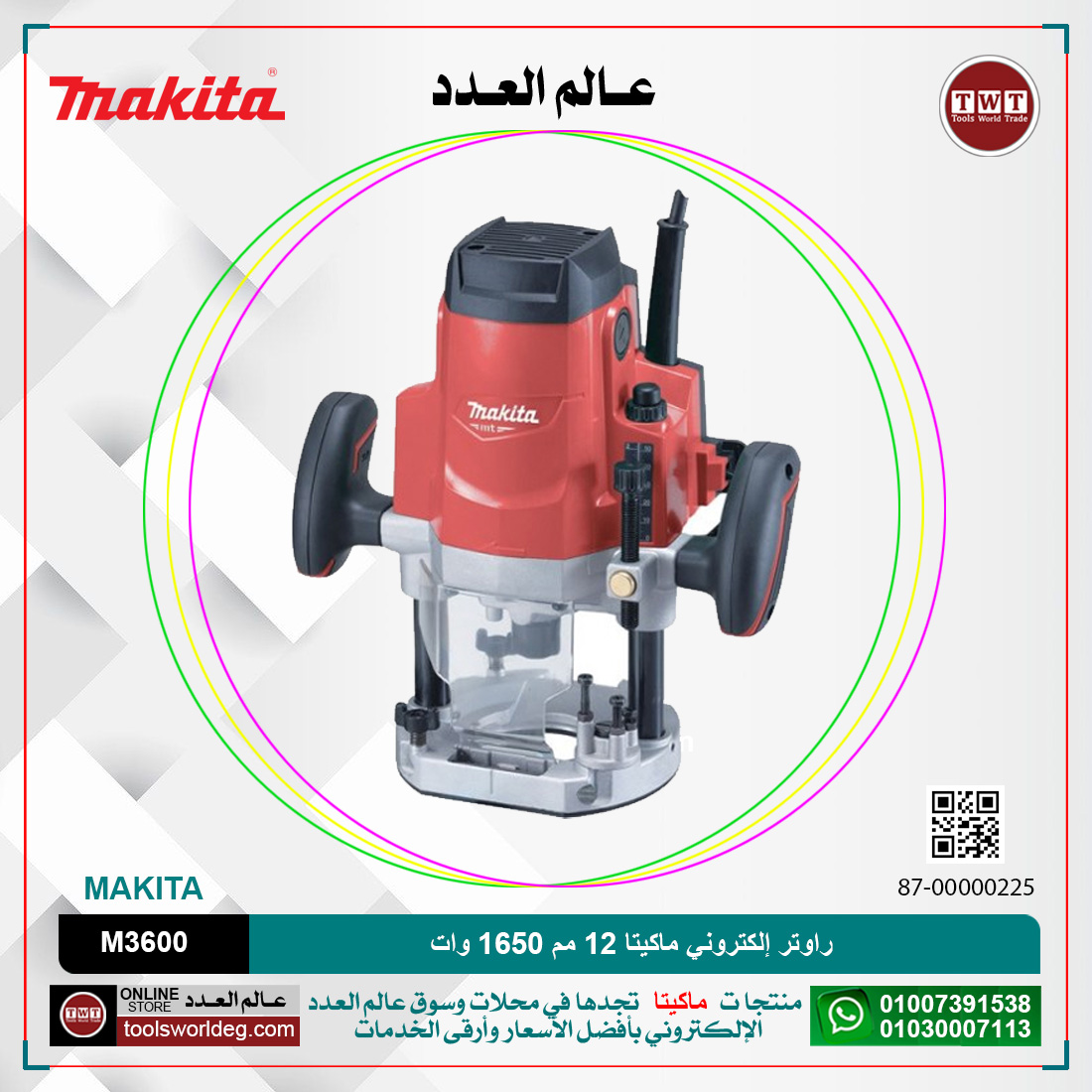 الوسوم: 87-00000225, M3600, MAKITA, TOOLS WORLD TRADE, TWT, حلية, حلية ماكيتا, حلية ماكيتا 12 مم, حلية ماكيتا 12 مم 1650 وات, حلية ماكيتا 12 مم 1650 وات M3600, حلية ماكيتا 12 مم 1650 وات MAKITA M3600, رواتر, عالم العدد, عدد, ماكيتا, ماكينات, ماكينات حلية, ماكينات حلية نجاري, معدات, معدات تعمل بالكهرباء, معدات كهرباء, مكنه, مكينه, نجاري
