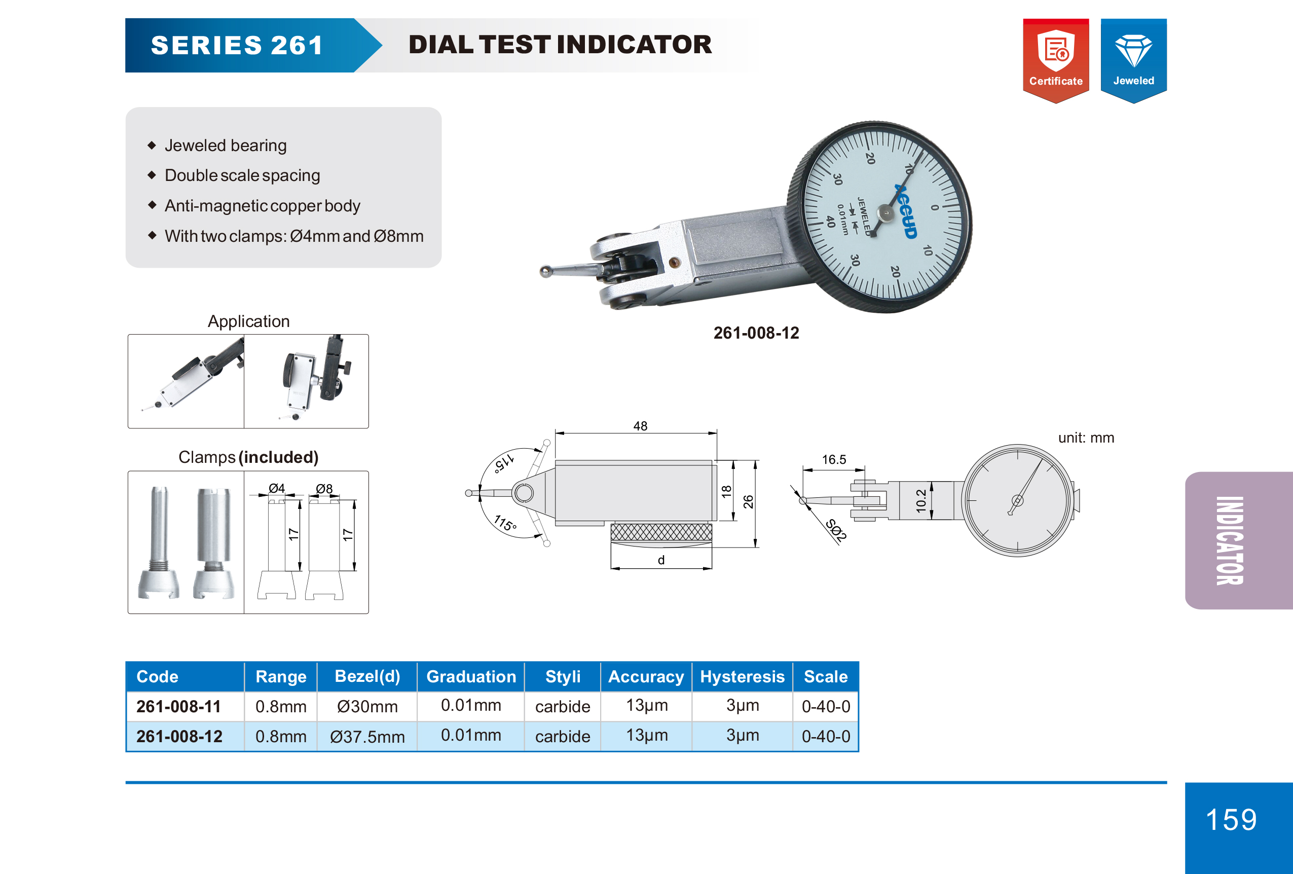 ساعه اختبار اكيود 0.8 مم دقه 0.01 مم سن كربيد قطر 30 مم ACCUD