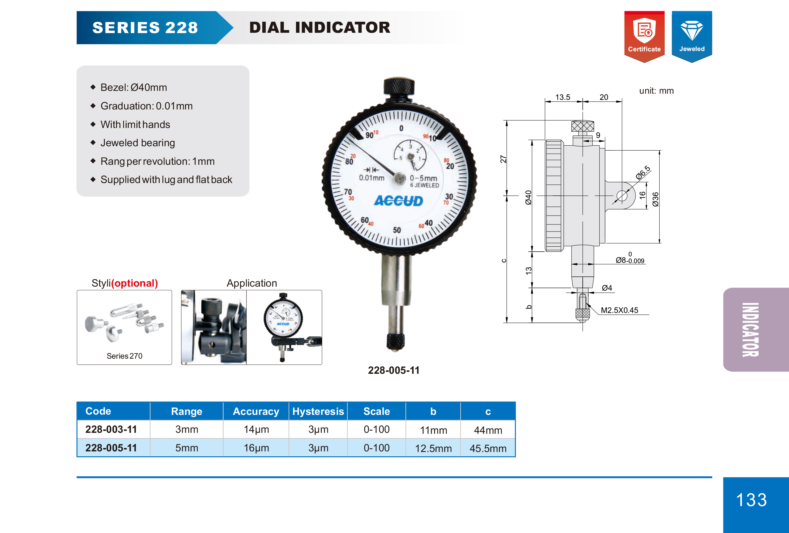 ساعه شنكار قطر صغير 5 مم دقه 0.01 مم بحامل خلفي اضافي ACCUD