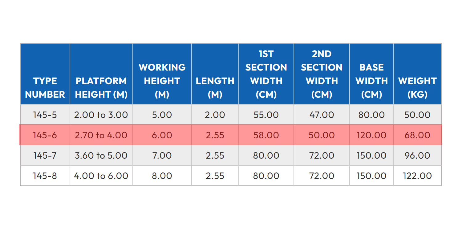سقالة الومنيوم ميتافورم 145 تليسكوبية الطول من 2.7م الى 4م METAFORM
