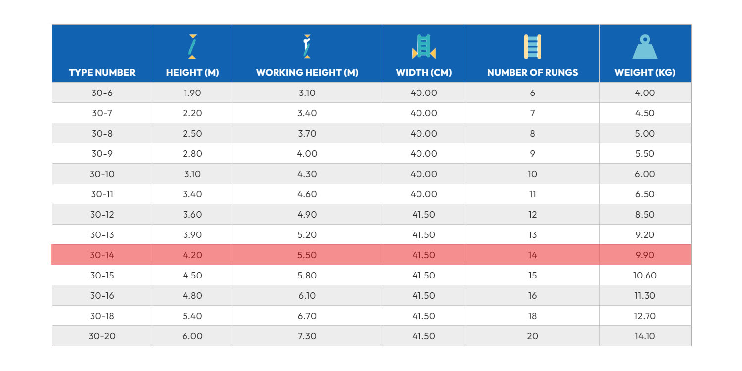 سلم الومنيوم ميتافورم طراز 30 مفرد الطول 4.20م 14 درجة METAFORM