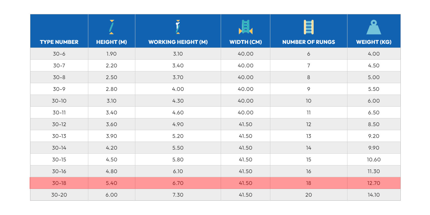 سلم الومنيوم ميتافورم طراز 30 مفرد الطول 5.40م 18 درجة METAFORM