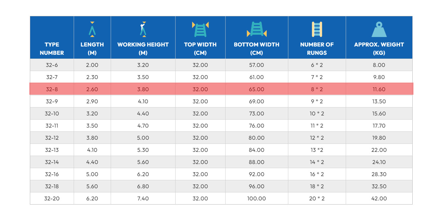 سلم الومنيوم ميتافورم طراز 32 مزدوج 8 درجة عادية الطول 2.60م METAFORM