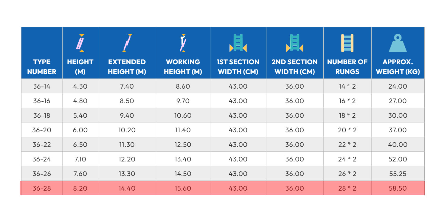 سلم الومنيوم ميتافورم طراز 36 وصلتين منزلقتين بحبل وهوك اتوماتيك (28 درجة مزدوج 8.20م – 56 درجة مفرد 14.40م ) METAFORM