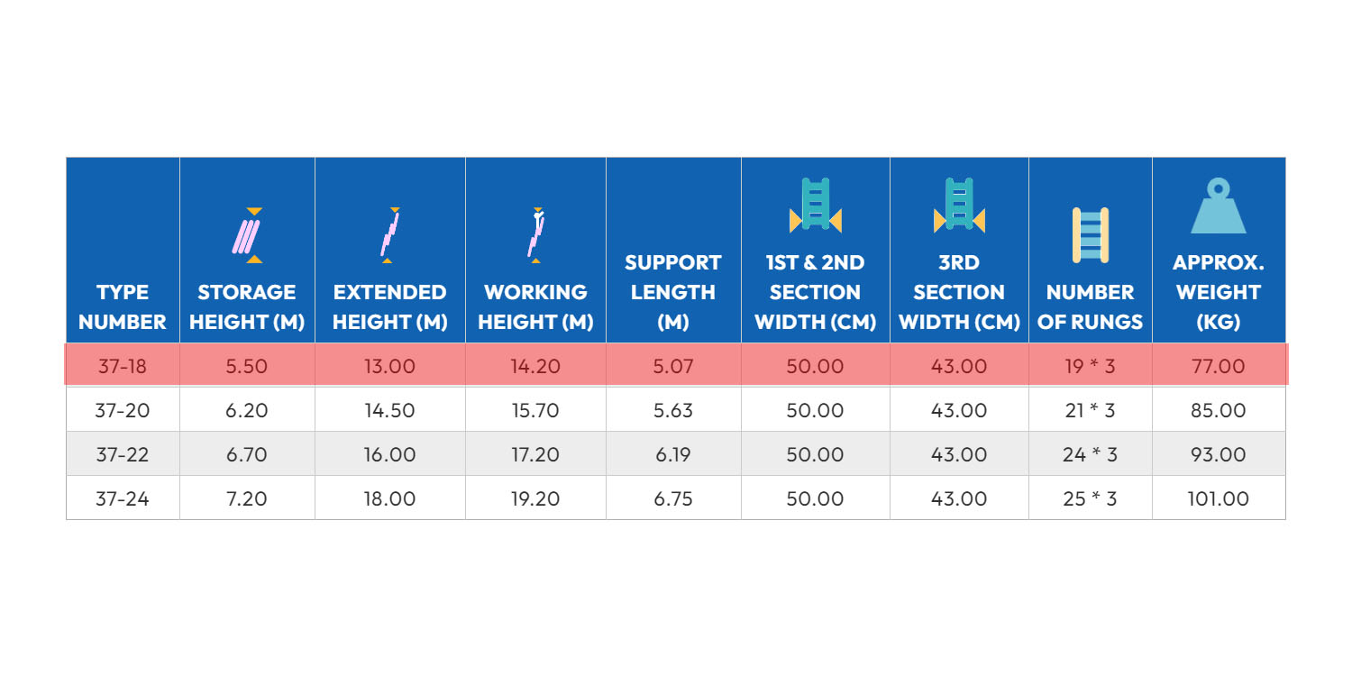 سلم الومنيوم ميتافورم طراز 37 ثلاث وصلات بحبل وهوك اتوماتيكى (18 درجة عادى 5.50م – 36 درجة ممتد 13م ) METAFORM