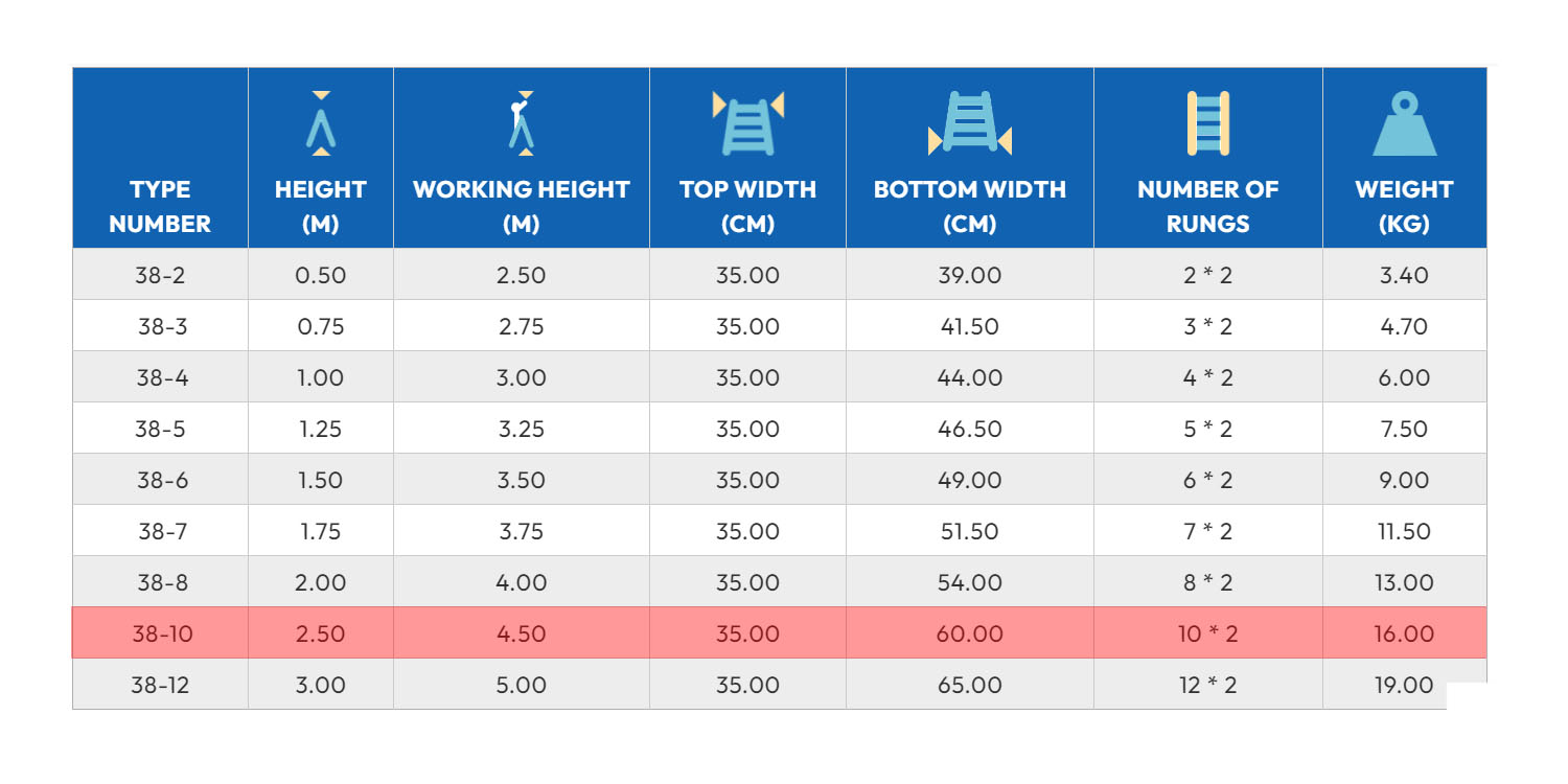 سلم الومنيوم ميتافورم طراز 38 مزدوج درج عريض الطول 2.5م METAFORM