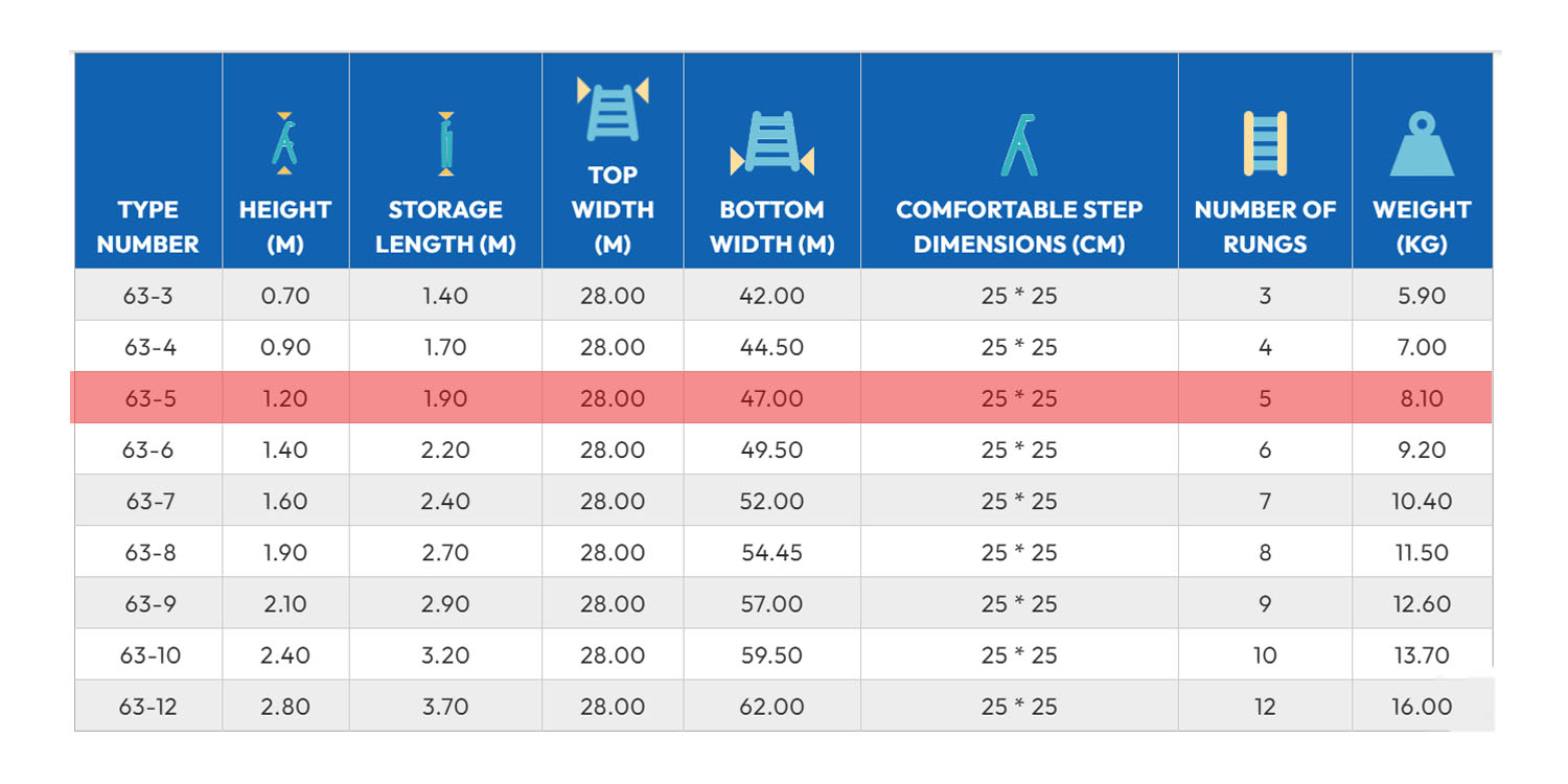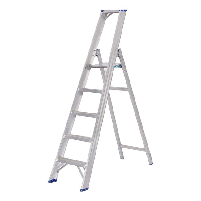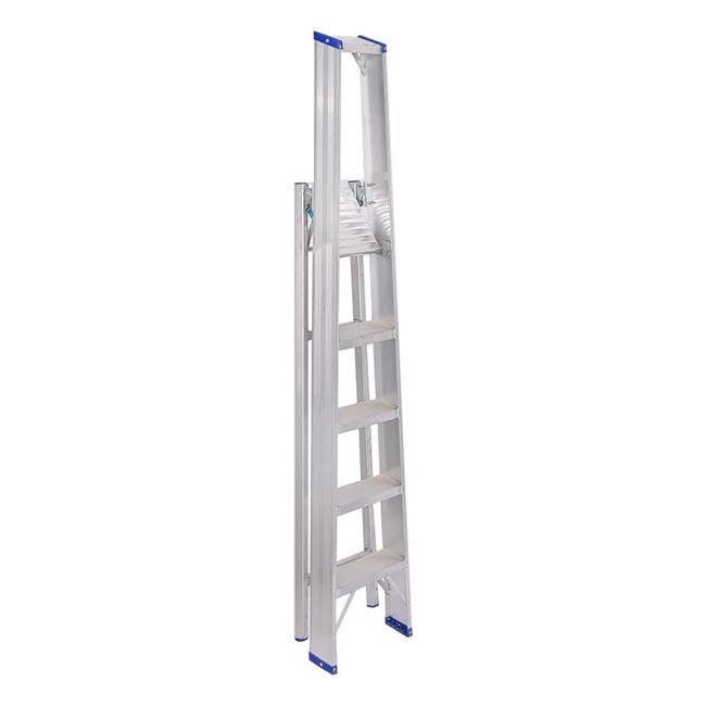 سلم الومنيوم ميتافورم طراز 63 مزدوج بدرج عريض مزود بمنصة وقوف الطول من 1.20م الى 1.90م METAFORM