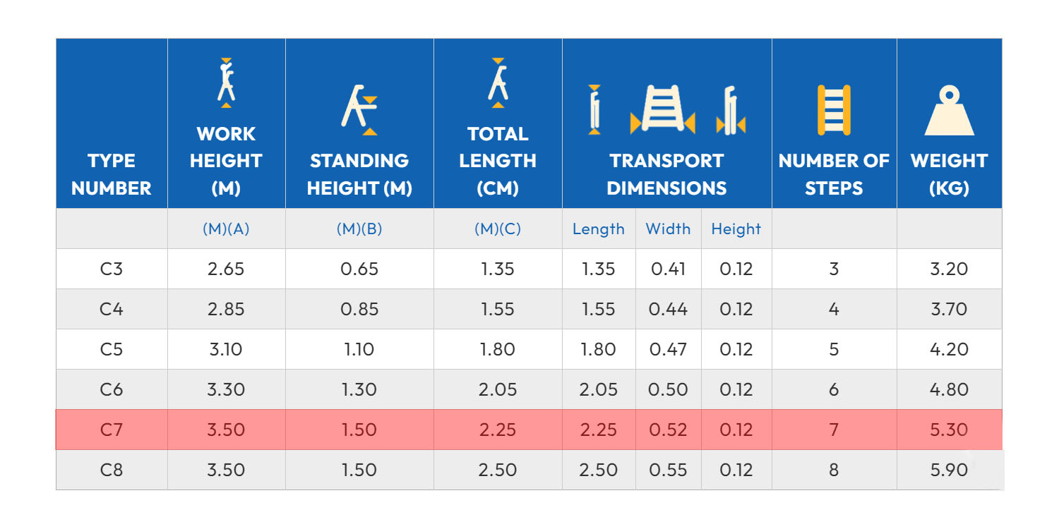 سلم الومنيوم ميتافورم منزلي طراز كومفي 7 درجات الطول من 1.50م الى 2.27م METAFORM
