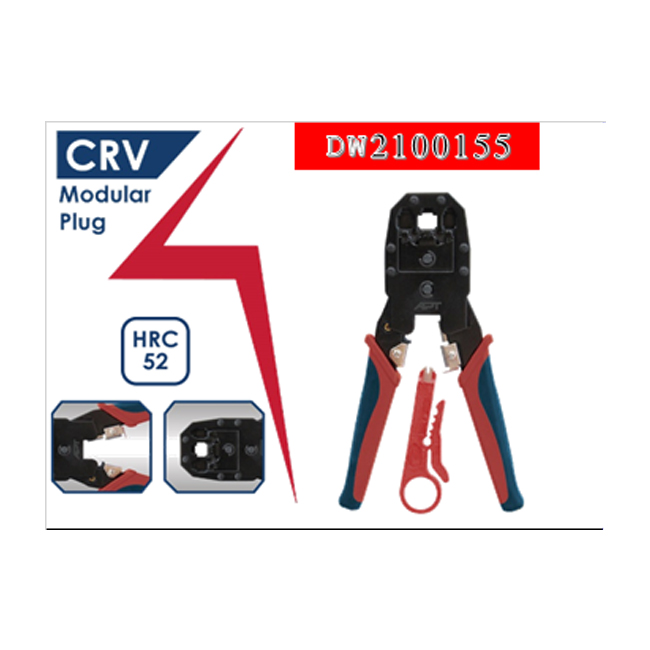 • تُوصَف بأنها أداة “Modular Plug Crimping Tool” — أي بنسة مخصصة لكبس مآخذ الشبكات/التليفونات (مثل وحدات RJ45 / RJ11 / RJ12) مع وظائف تقشير أو قص أو كبس.