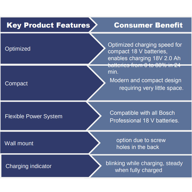 المدمجة 18 فولت لأنها تشحن بطارية 18 فولت 2.0 أمبير في الساعة في 36 دقيقة إلى