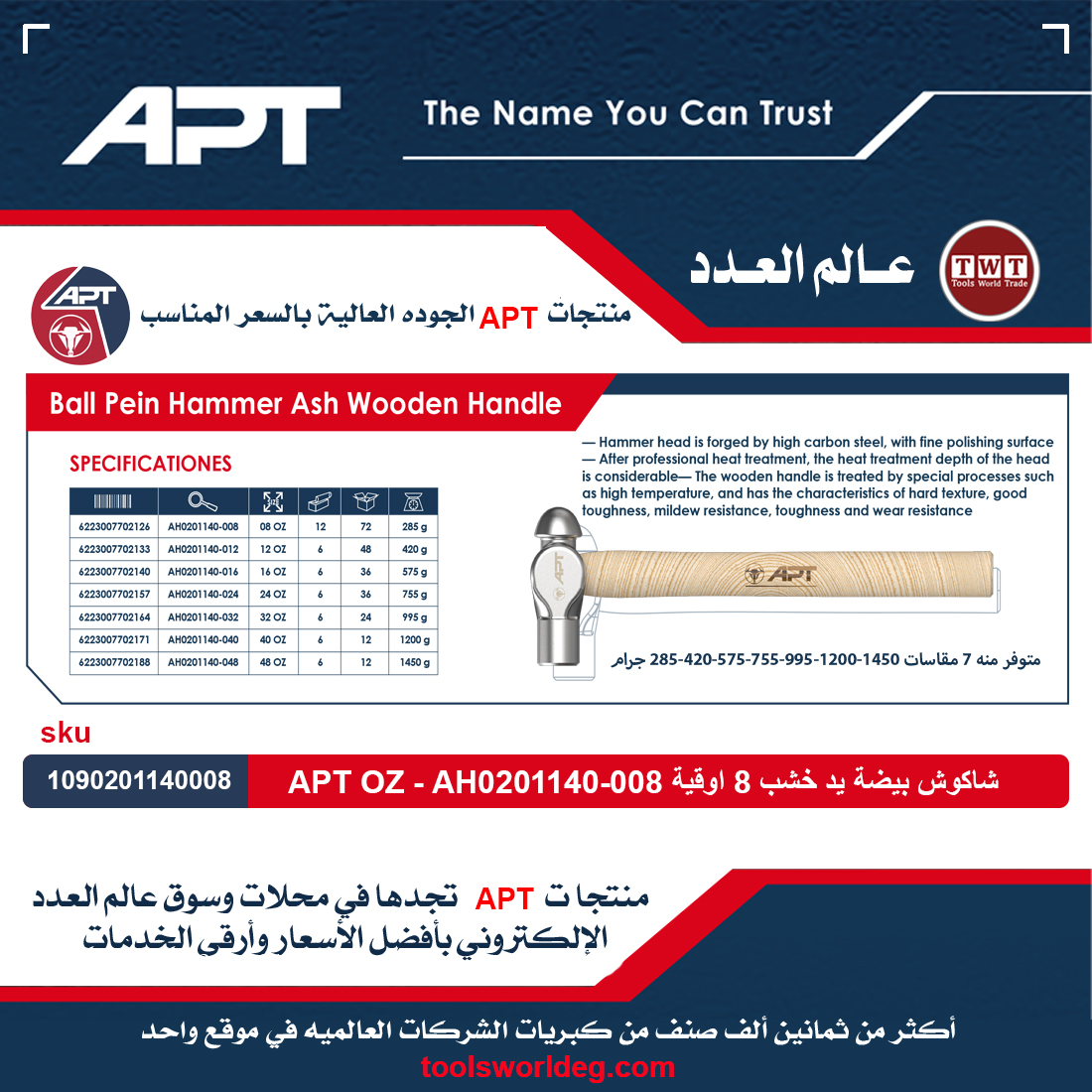 شاكوش بيضة يد خشب 8 اوقية اي بي تي موديل APT AH0201140-008