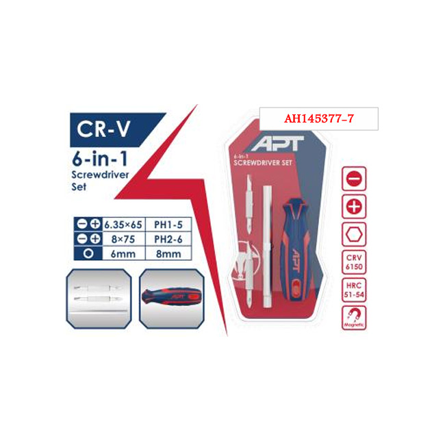 مفك قلاب 2 لون 2سن اتجاهين لقمه 6 الى 8 مم 6×1 على كارت اي بي تي موديل APT AH145377-7