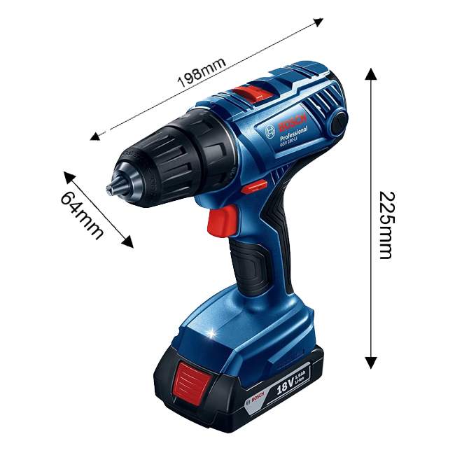 شنيور بوش عاده ودقاق 13 مم بطاريه ليثيوم ايون 1.5 امبير يمين وشمال ظرف اوتوماتيك سرعتين BOSCH