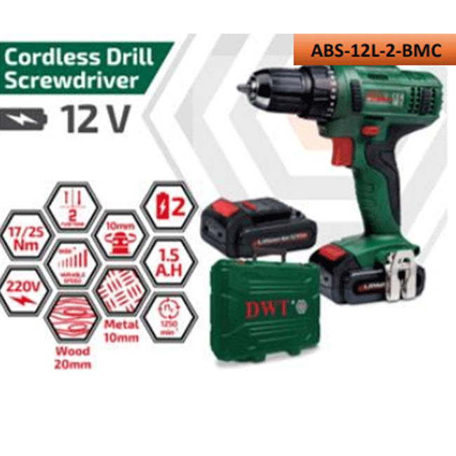 شنيور دي دبليو تي بطارية 12 فولت 10 مم 2 بطارية 1.5 امبير موديل DWT ABS-12L-2