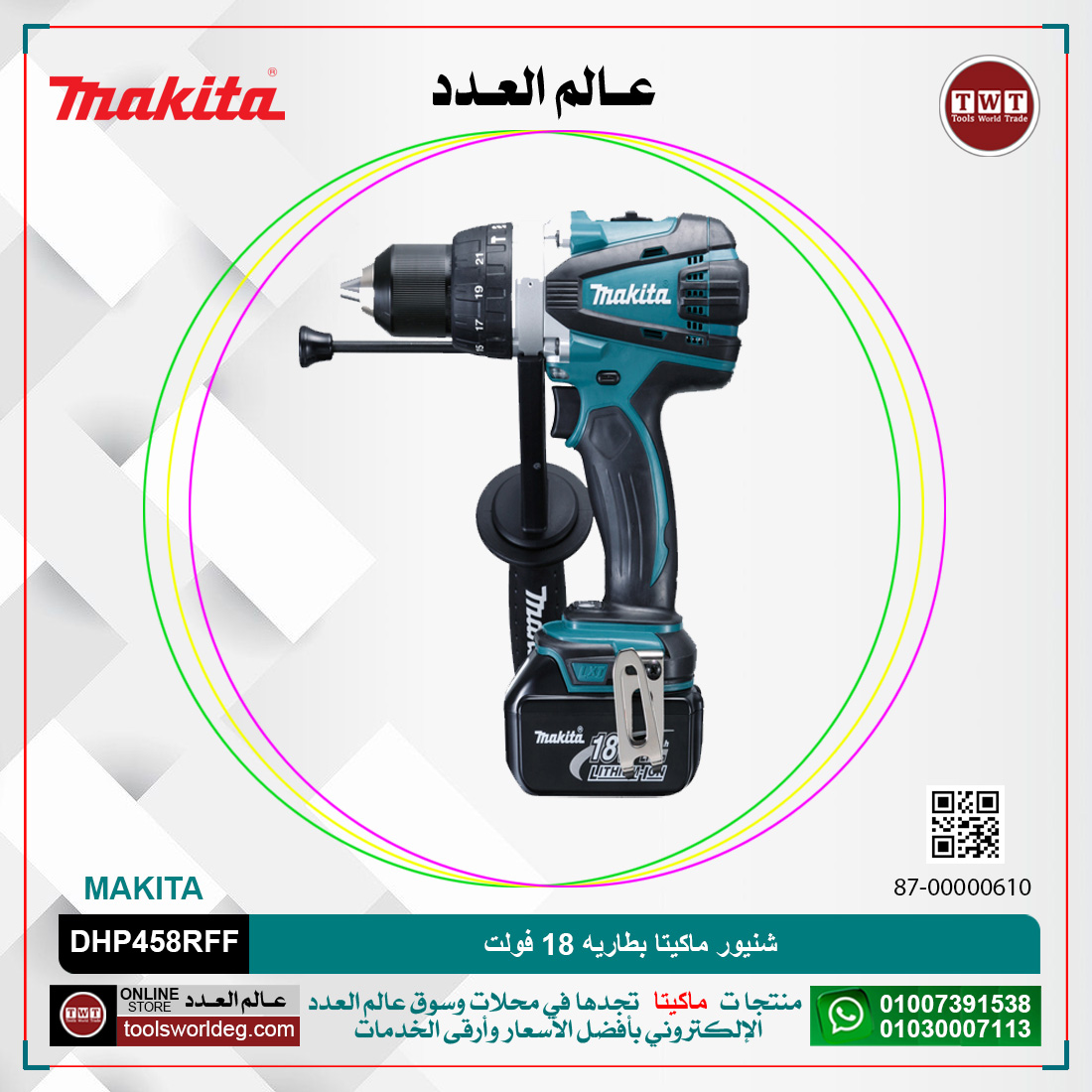 شنيور ماكيتا بطاريه 18 فولت موديل – MAKITA DHP458RFF