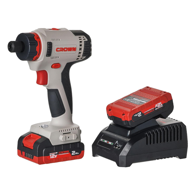 شنيور مفك بطاريه كراون 12 فولت 2 امبير 30 نيوتن شنطة بلاستيك موديل CROWN CT21081HB-2