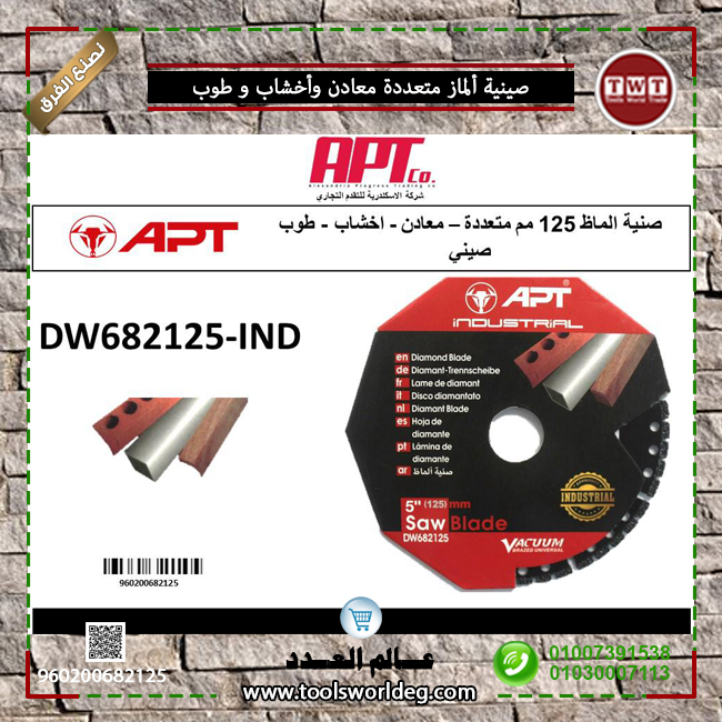 صنية الماظ اي بي تي 125مم 5 بوصه متعددة معادن و اخشاب و طوب APT – IND DW682125