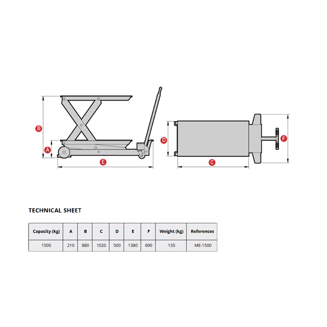 طاولة ميجا هيدروليك خدمة شاقة أسباني مقاس 1.5 طن موديل MEGA ME-1500